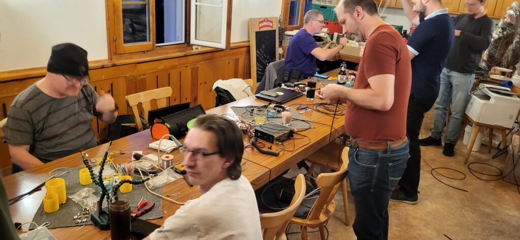 Zwischen dem Geruch von frischem Lötzinn und den angeregten Fachgesprächen kam natürlich auch die Geselligkeit nicht zu kurz. Mit dem Wissen, dass nun einige hocheffiziente Drahtantennen mehr im Umlauf sind, gingen alle mit einem Lächeln nach Hause. Ein grosses Dankeschön an alle, die mitgeholfen, Material organisiert und ihr Wissen geteilt haben. Wir freuen uns schon darauf, die neuen Eigenbau-Schätze bald „on air“ zu hören!